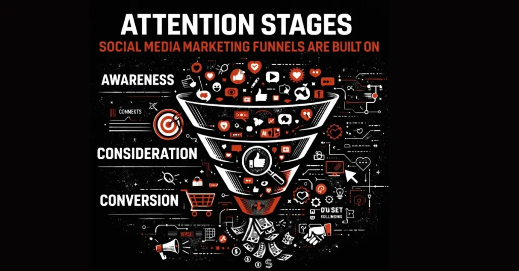 Social Media Marketing Funnels Are Built on Attention Stages Most people believe that SMM is about regular posting, adding followers, and getting likes. In fact, successful social media marketing has little in common with posting-it’s all about managing attention. Every user on social media is going through different attention stages, and your content needs to walk them through step by step. This is where the concept of social media marketing funnels comes in-not as rigid steps, but transitions of attention. If you understand how attention works, you don’t have to chase algorithms. It’s the algorithm that will follow human behavior. What’s a Social Media Marketing Funnel? A social media marketing funnel is a path that a user goes through from: But unlike traditional funnels, SMM funnels are not linear. People do not go step by step. They go by how much attention they would want to pay to you. That’s why the attention stages are more important than tactics. The Value of Attention: A Look at Social Media & Attention Economics On social media, the user is: Therefore, attention must be earned before conversion, trust, and interaction can occur. Social media favors content that is: What this means is that the quality, rather than the quantity, of attention is what matters The 4 Stages of Attention on Social Media Marketing Funnels1️⃣ Cold Attention Stage (Discovery Stage User mindset: ‘I don’t know you, and I’m not looking for you.’ At this stage: Such content includes: Goal: Big mistake: At this stage, selling will choke your funnel. 2️⃣ Warm Attention Stage – Familiarity Stage User mindset: “I’ve seen this person/page before.” Here: Content that works here: Objective: This is where consistency in content plays a major role. 3️⃣ Trust attention stage (Authority Stage) User mindset: “They know what they’re talking about.” Now users: The following are examples of content that work: Goal: Trust isn’t based on claims, but on clarity and repetition. 4️⃣ Action Attention Stage (Conversion Stage) User mindset: “I’m ready to take the next step.” Barely one in a thousand attains this level, but such persons are the most precious. What kind of content might be useful in: Goal: The modern SMM funnel will normally conclude with any of the: Why Most Social Media Marketing Fails Most failures happen because: This breaks the funnel. Common mistakes when it comes to creating a funnel in ClickFunnels: How Algorithms Support Attention-Based Funnels Social media algorithms monitor: These are attentional cues. When the user: The algorithm pushes your content more. Algorithms don’t rank content, they scale attention. Platform-Wise Attention Funnel Behavior Instagram Facebook LinkedIn No funnel can be replicated across sites. Why Attention-Based Funnels Are an Improvement Over Regular Funnels Traditional funnels: Attention-based Funnels: That is why there is a shift from traditional funnels in current digital marketing. How Businesses Should Use This Funnel Model To Apply This: Simple rule: Attention first → Trust next → Action last Conclusion: Social Media Marketing is no longer a task where one needs to post every day or keep updating posts based on the latest trends When you understand attention stages: Algorithms operate in The Social Media Marketing Funnel is an attention-based, not tactic-based, framework.